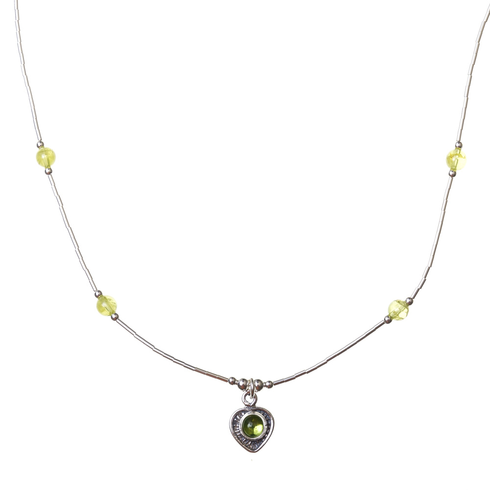 Peridot Heart Necklace in Sterling Silver, Heart is 1cm in size